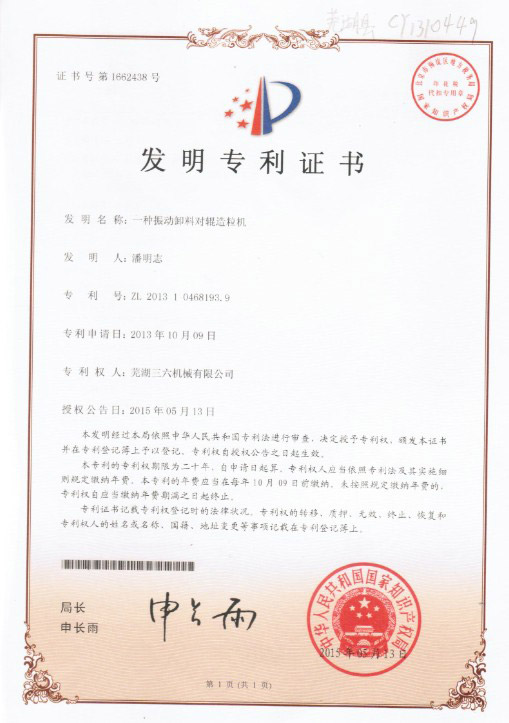 • 發明專利證書